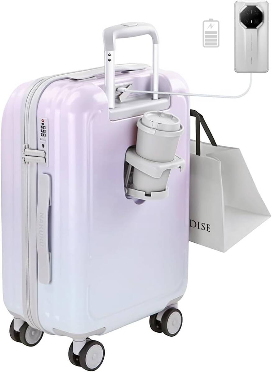- 【セール】[NAKURU] キャリーケース スーツケース 20インチ TSAロック USB充電 軽量 静音ダブルキャスター 大容量45L パープル 拡張可能