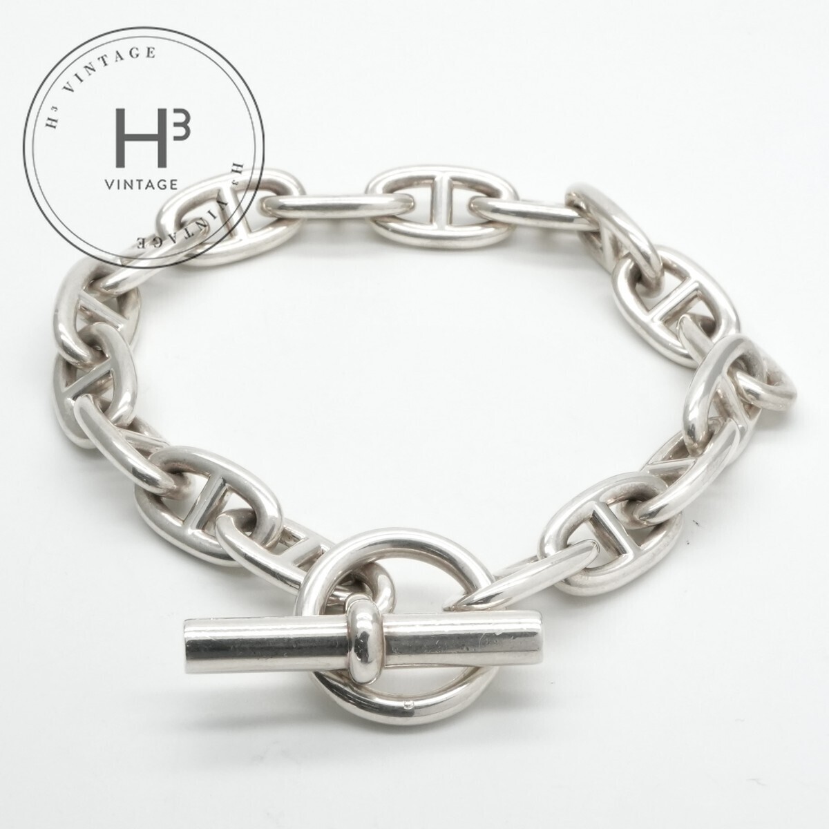 - エルメス HERMES シェーヌダンクル ブレスレット バングル カフ 925 銀 17コマ