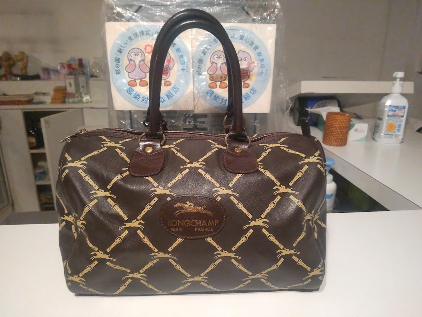 - 昭和レトロ★80年代 当時物 コンパニオン キャンギャル ディスコ LONGCHAMP ロンシャン ハンドバッグ ボストンバッグ★乗馬 スチュワーデス