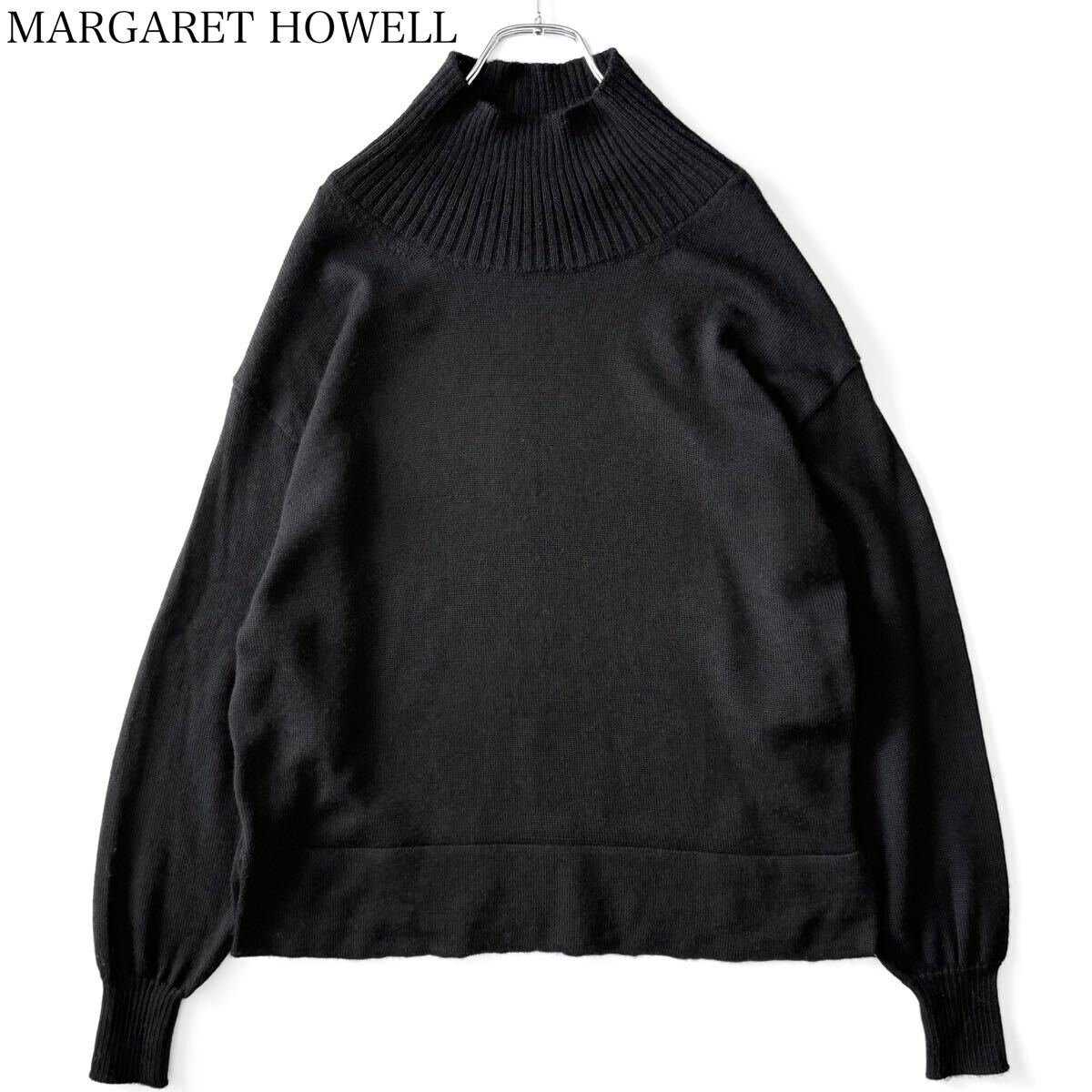 - 近年モデル MARGARET HOWELL マーガレットハウエル WORSTED KNIT モックネック セーター 切替 リブニット メリノウール レディース 黒