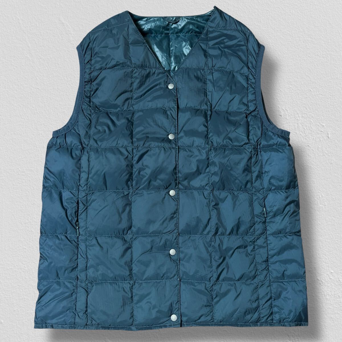 > TAION Vネックダウンベスト ネイビーブルー M ●洗濯プレス済●ネコポス可● タイオン インナーダウン ベスト ダウン 古着/655