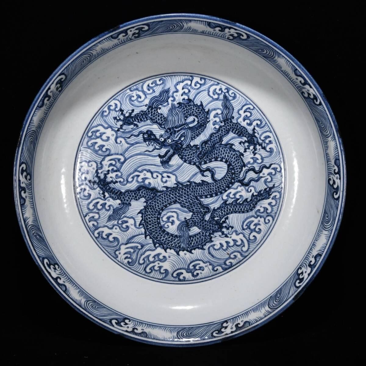 > ◆珍蔵◆中国古美術 大明永樂年製款 青花 古陶磁 海水 龍紋大盤 精品 細密細工造 置物 擺件 骨董品 古賞物