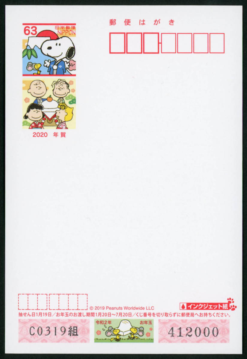 18442A6◆複数出品◆2020年用 スヌーピー 63円★年賀はがき 令和2年用