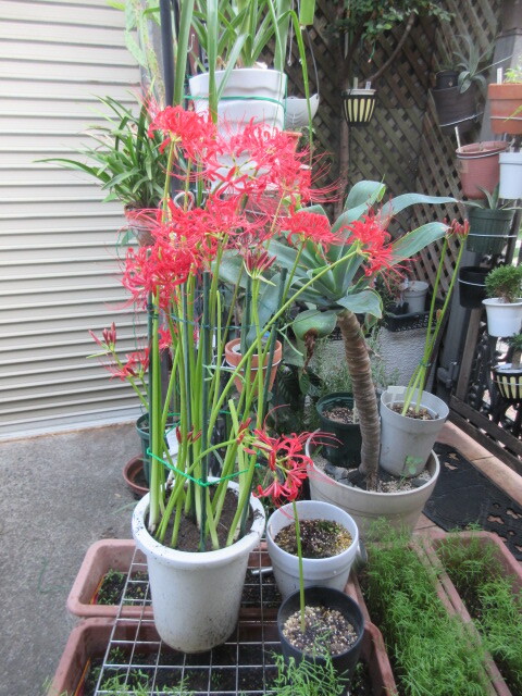 - 彼岸花 赤鉢植え お彼岸に合わせようやく群れで咲きました 今なら花付きでお送りできます 9/26撮影