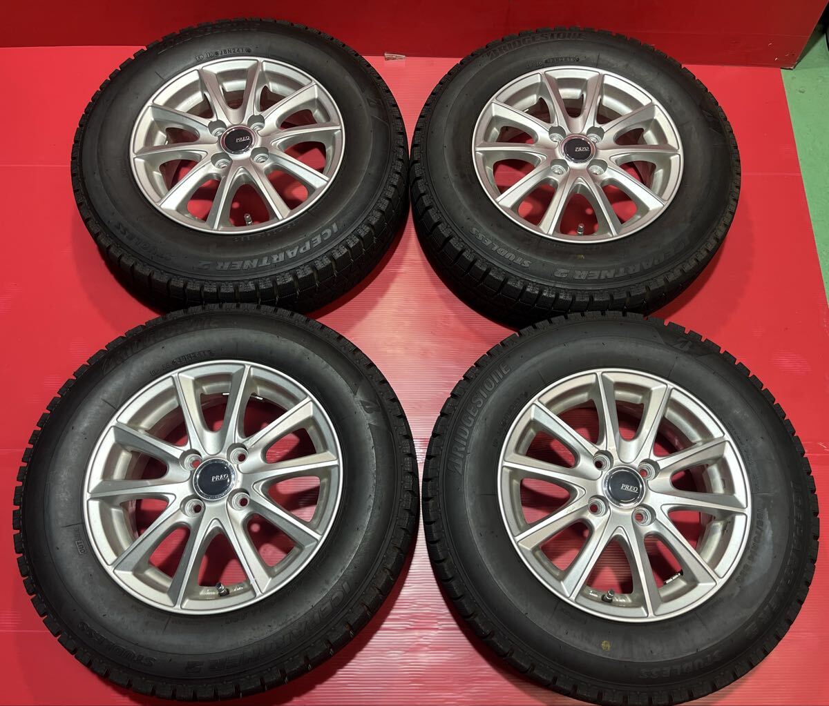 - H-27 PREO 14×5.5j+45 100/4H 185/70R14 19年製 9分山 4本セット