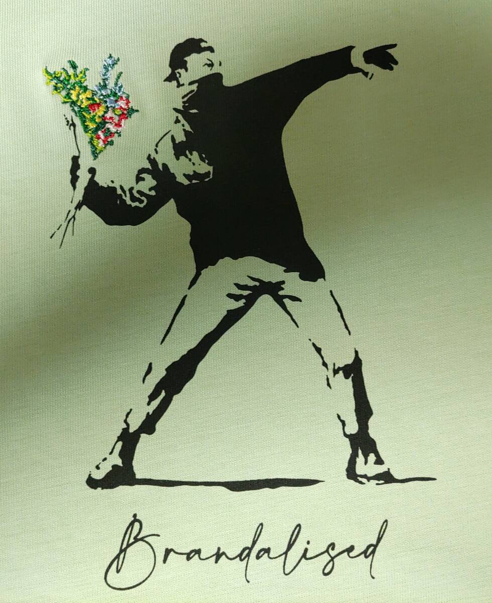 - 2025 UNITED ARROWS BRANDALISED×DAYINTHELIFE コラボ『BANKSY ART Tシャツ FlowerBomber』半袖 丸首 LIME M・身幅約55cm 前プリ※未使用