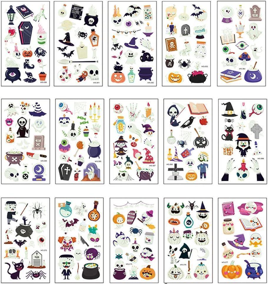 - ハロウィン タトゥーシール 夜光ステッカー 15枚セット キッズ仮装 可愛い