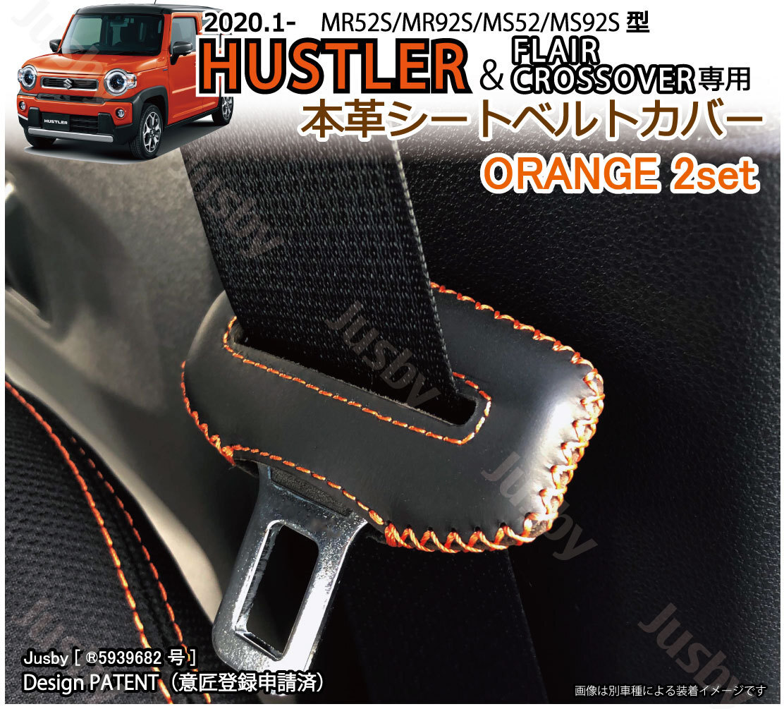 - (本皮/本革)スズキ ハスラー(HUSTLER)専用 シートベルトカバー (オレンジステッチ)レザーカバー/ドレスアップ MR52S 92S パーツ