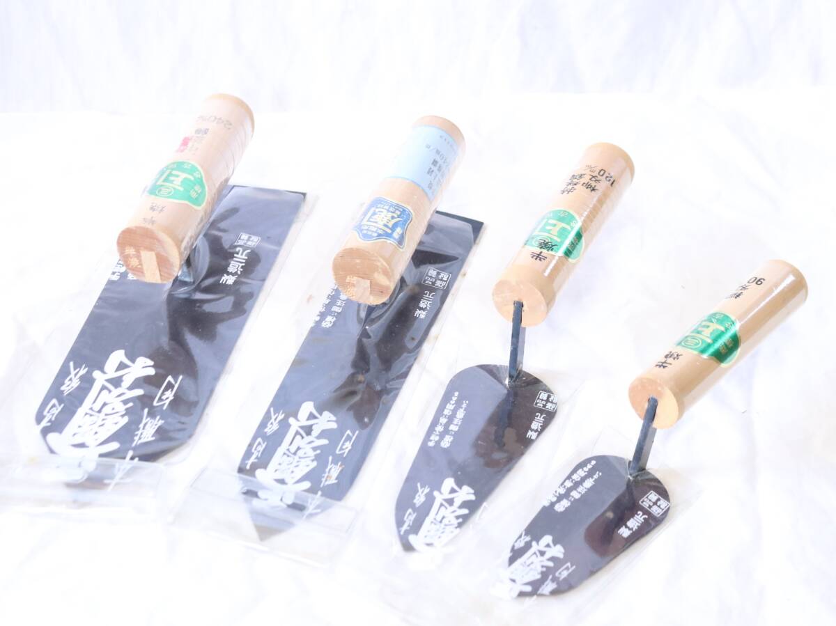 > 90mm 120mm(柳刃) 240mm(半焼 中塗、仕上) 4点 本職用 最高級 正鋼別打 まとめ 左官道具 左官鏝 こて コテ