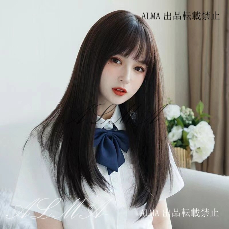 - 新品人毛 ミディアムヘア 鎖骨ボブ シースルーバング ふんわりヘア 黒茶カラー つむじ部分手植え 自然に見えますフルウィッグ