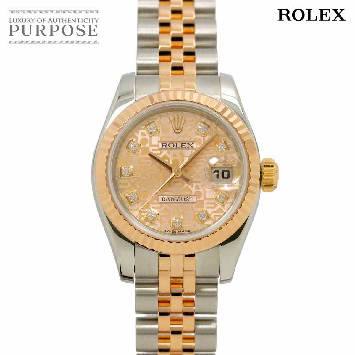 > ロレックス ROLEX デイトジャスト コンビ 179171G V番 ルーレット レディース 腕時計 10P ダイヤ K18PG 自動巻き Datejust 90293028