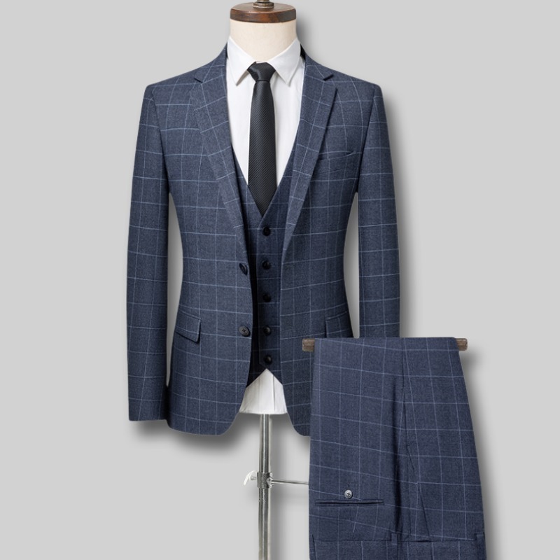 - Y6538-XL 紺 新品 セットアップスーツ ウール混 格子柄 ベスト付きスーツ 3ピーススーツ ウエスト調節可能 スラックス ビジネス メンズ