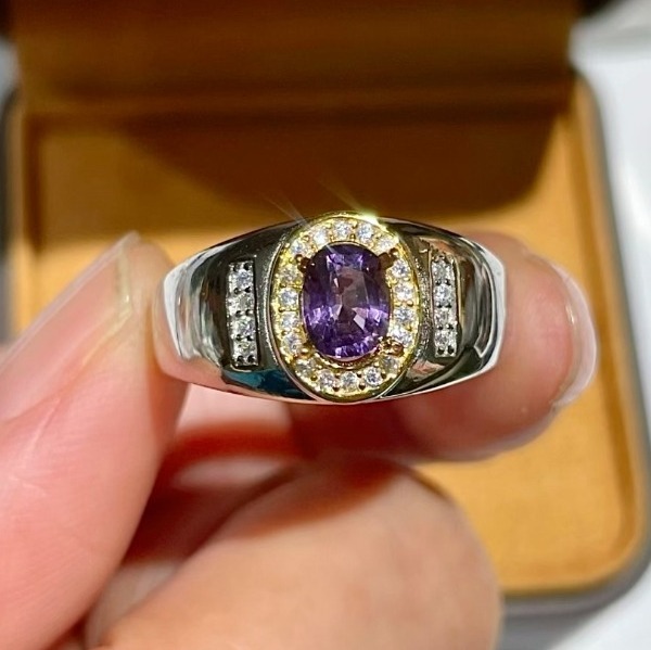 > ナチュラル パープル スピネル リング 5×7mm 鑑別付き 天然石 宝石 ギフト ◆最初の入札者様は開始価格で購入可能 Yu_9410
