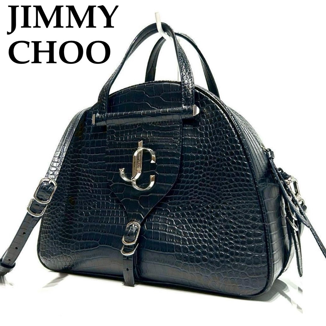 - 極美品 jimmychoo ジミーチュウ ヴァレンヌ クロコダイル 2way ショルダーバッグ 濃紺 ネイビー バック 鞄 カバン レディース