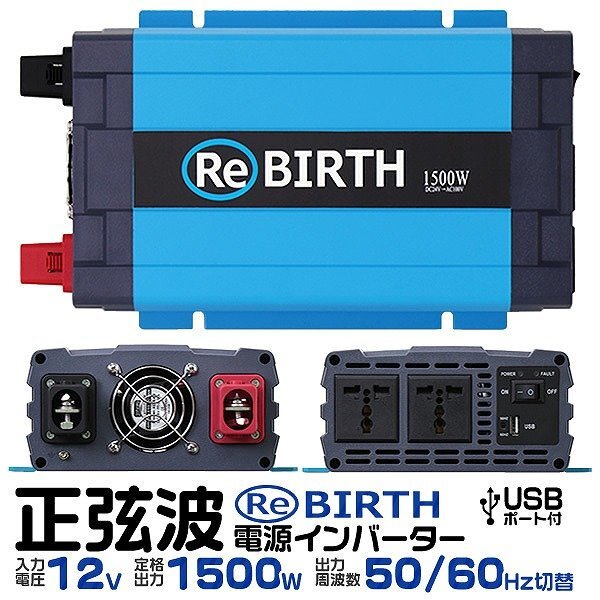 - 【限定セール】新品 正弦波 電源インバーター DC12V→AC100V 定格出力1500W 3Pプラグ対応 カーインバーター 車載 USBポート アウトドア