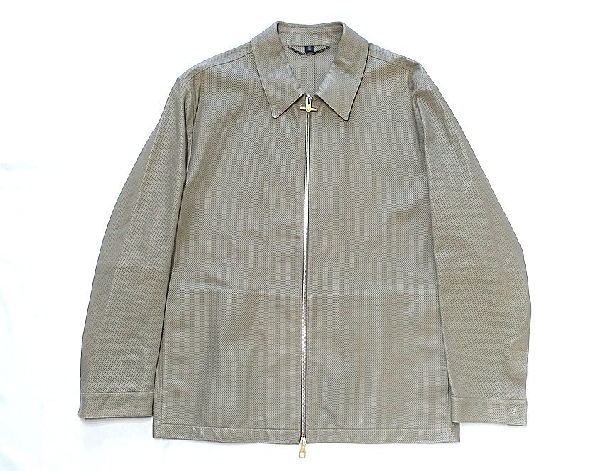 - 極美品 dunhill ダンヒル Tバー ダブルジップアップ パンチング ラムレザー ジャケット ベージュブラウン系 メンズ M ブルゾン