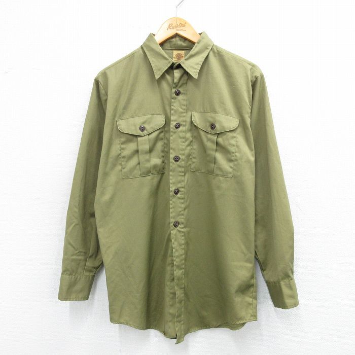 - L/古着 長袖 ボーイスカウト シャツ メンズ 80s 緑系 グリーン 25sep19 中古 トップス