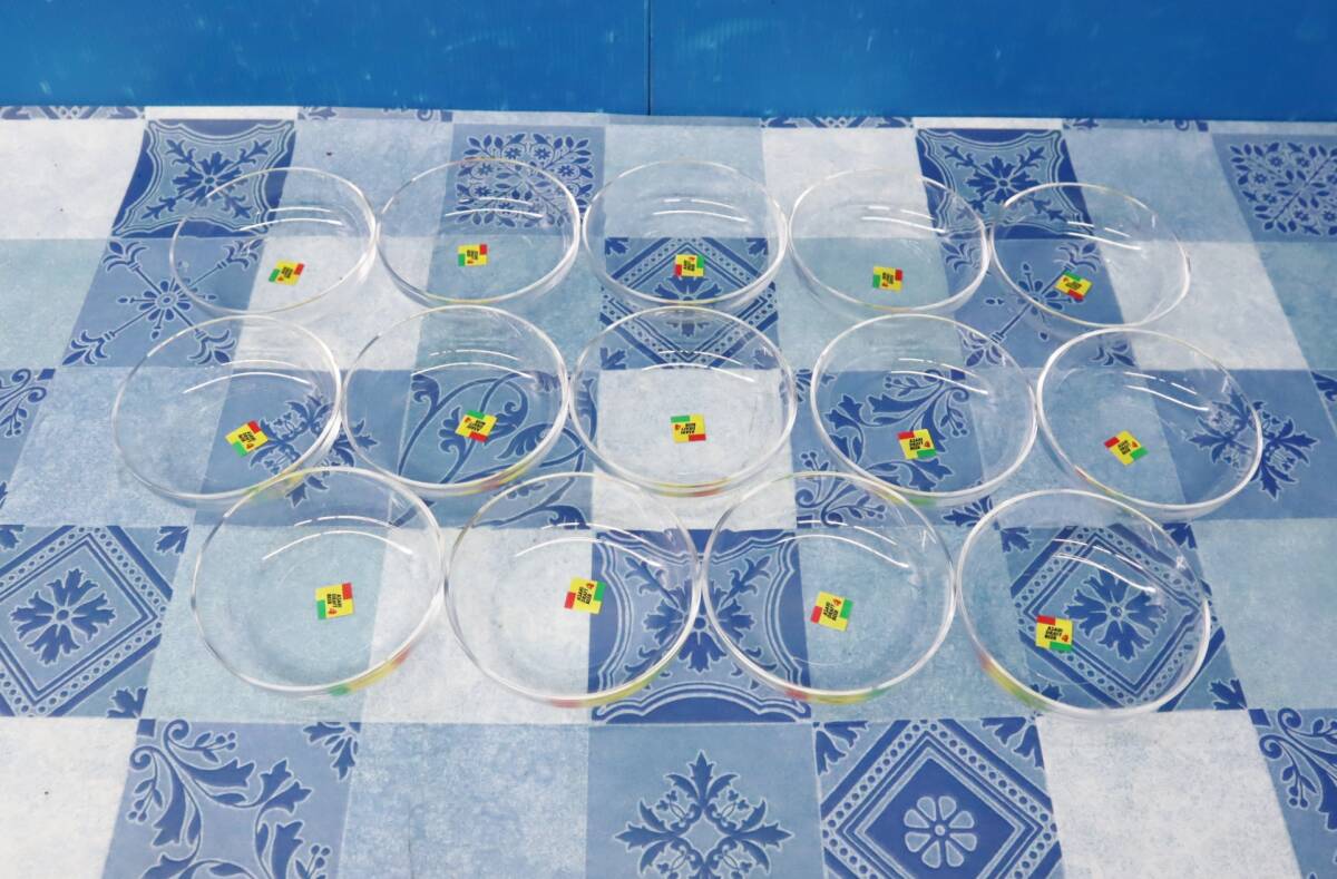 - ◆未使用品 |ラスタディッシュ 14枚まとめ|ASAHI アサヒビール おつまみ皿 ガラス|1985年 昭和60年 ノベルティ レトロ■O1388