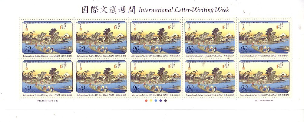 - 「国際文通週間2003 東海道五拾三次之内・川崎」の記念切手です