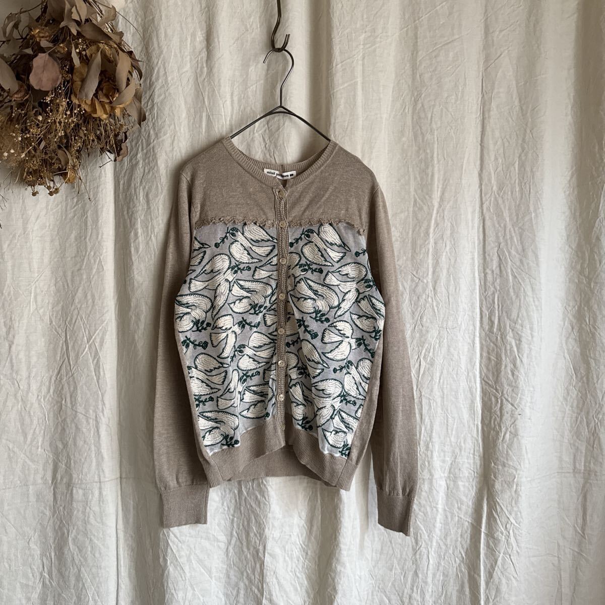 > レア mina perhonen ミナペルホネン following day チュール刺繍 切替ニット カーディガン 36
