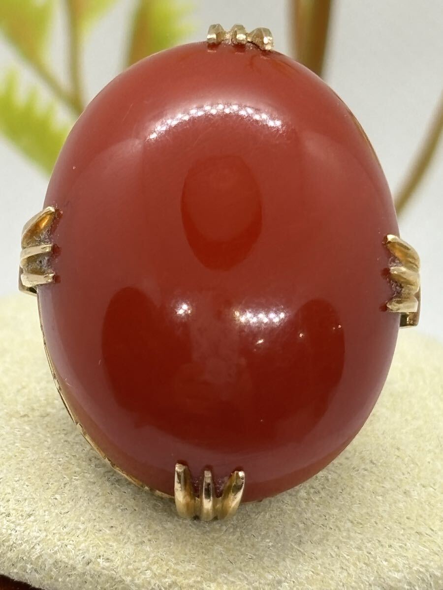 - 美品/k18/天然血赤本珊瑚/素敵な指輪リング/12号/11.67g(A964)