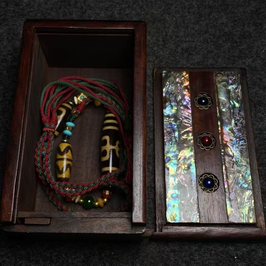 - 清時代 宮廷御蔵 古花梨木機関宝箱 蔵 老天珠 掛件 吊墜 手彫り 古玉 箱有 極細工 古置物 天然石 古美術 古賞物 古董品 時代物 中国唐物927