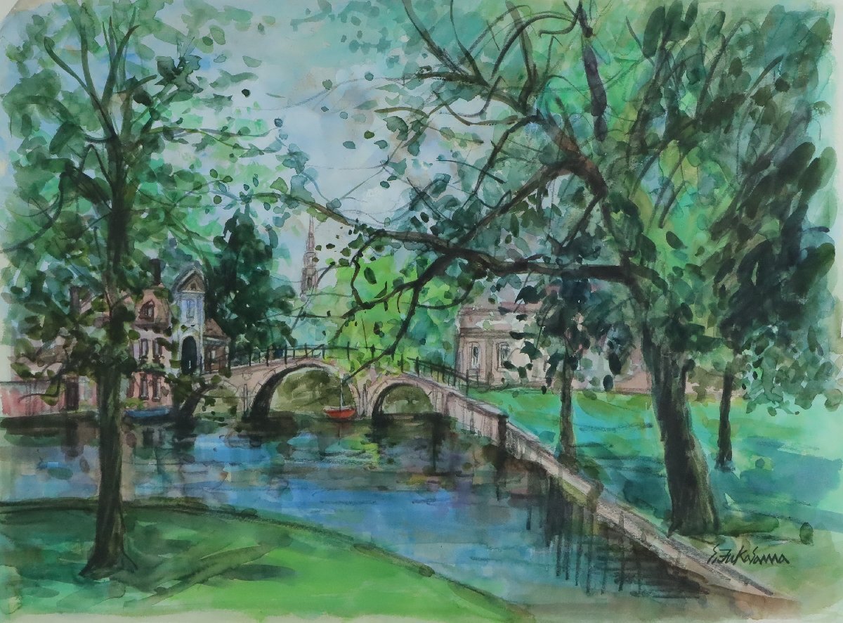 ・深沢昭明「ブルージュ 愛の湖」水彩画 額装品 /風景画 自然画 大型 200