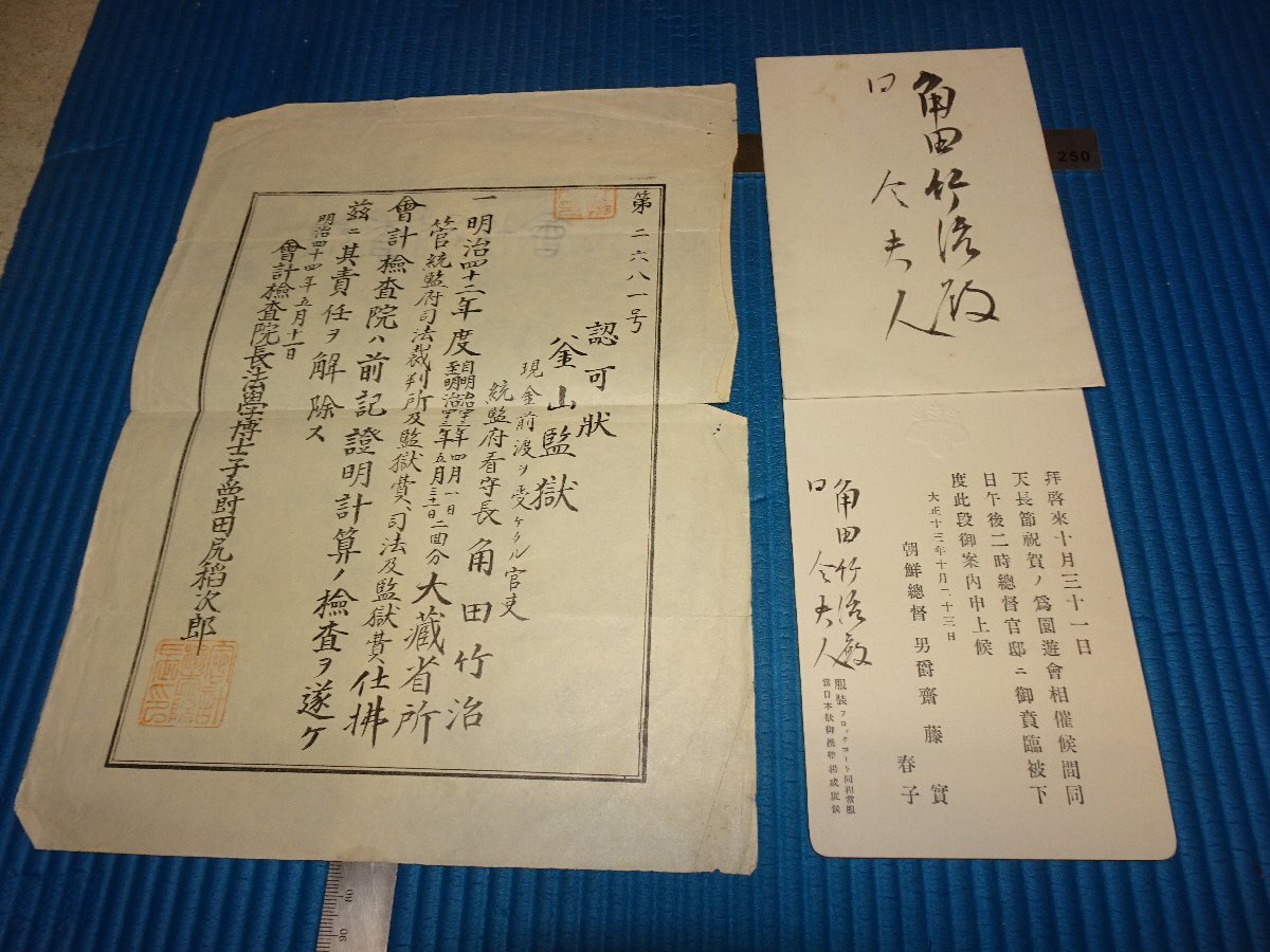 - Rarebookkyoto F2B-430 李朝朝鮮 統監府 釜山獄看守長 認可証一枚と総督府遊園会案内 一枚 1909年頃 名人 名作 名品
