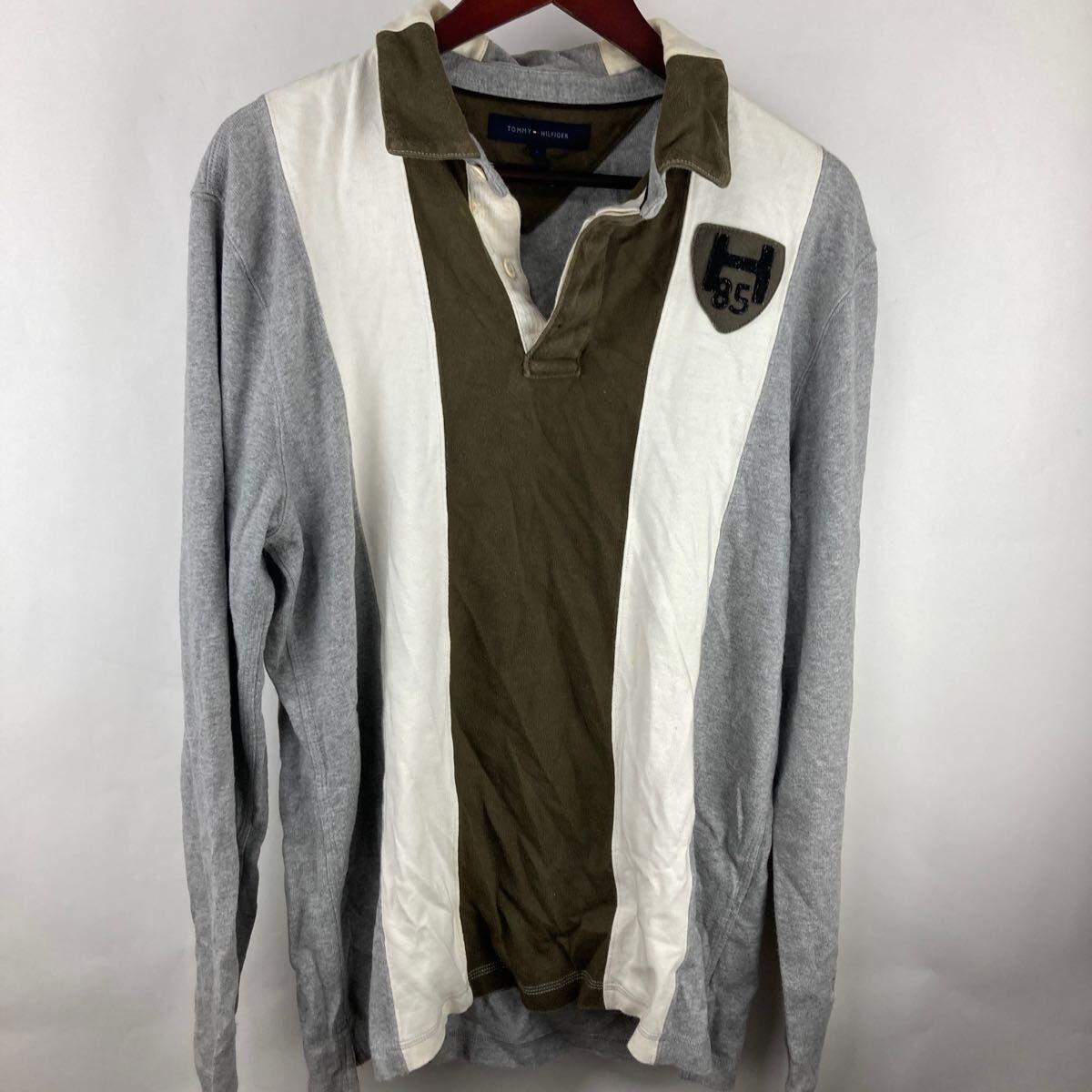 > TOMMY HILFIGER トミーヒルフィガー 長袖ポロシャツ ボーダー 古着 古着卸 L メンズ スウェット カジュアル ロゴ ボタン付き オシャレ