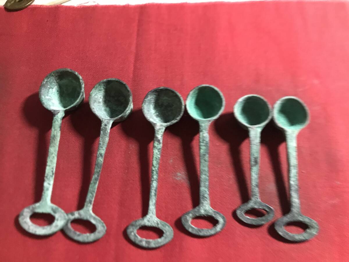 - 銅器 薬計量器 スプーン 6個 時代物