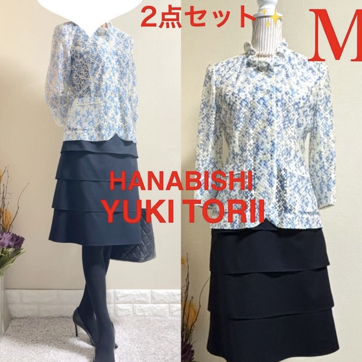 - M スーツ!銀座花菱 フリルカラーレースジャケット YUKI TORII ユキトリイ ティアードフリルスカート フォーマルスーツ セレモニー