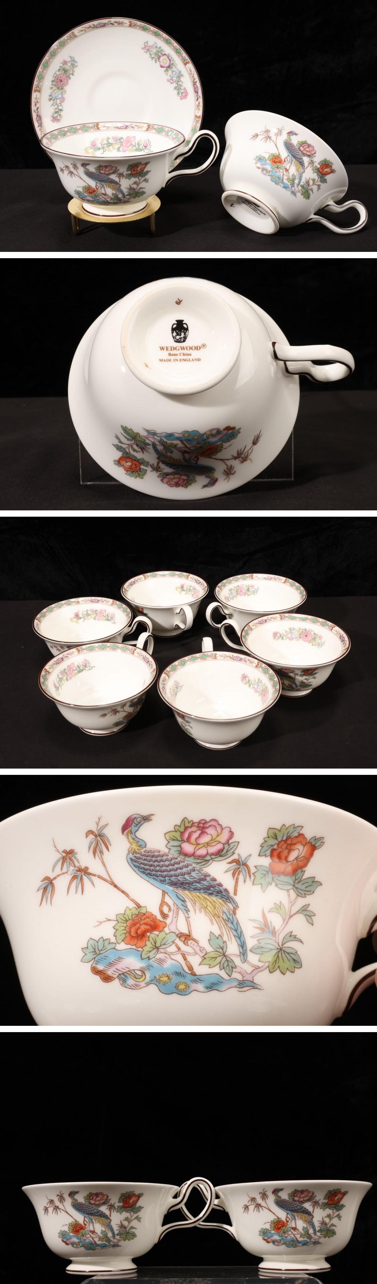> 【珍品堂】1円から W20-V15 ウェッジウッド WEDGWOOD クタニクレーンシリーズ カップ&ソーサー 洋食器 イギリス製 6客 廃盤 時代物 希少品