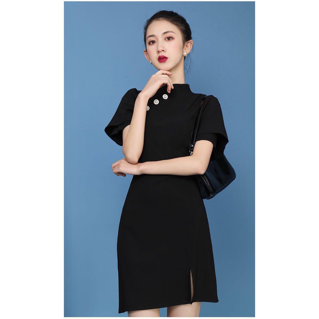 - 残り1点 ミニ丈 ワンピース チャイナドレス ブラック ショート丈 ハロウィン 仮装 結婚式