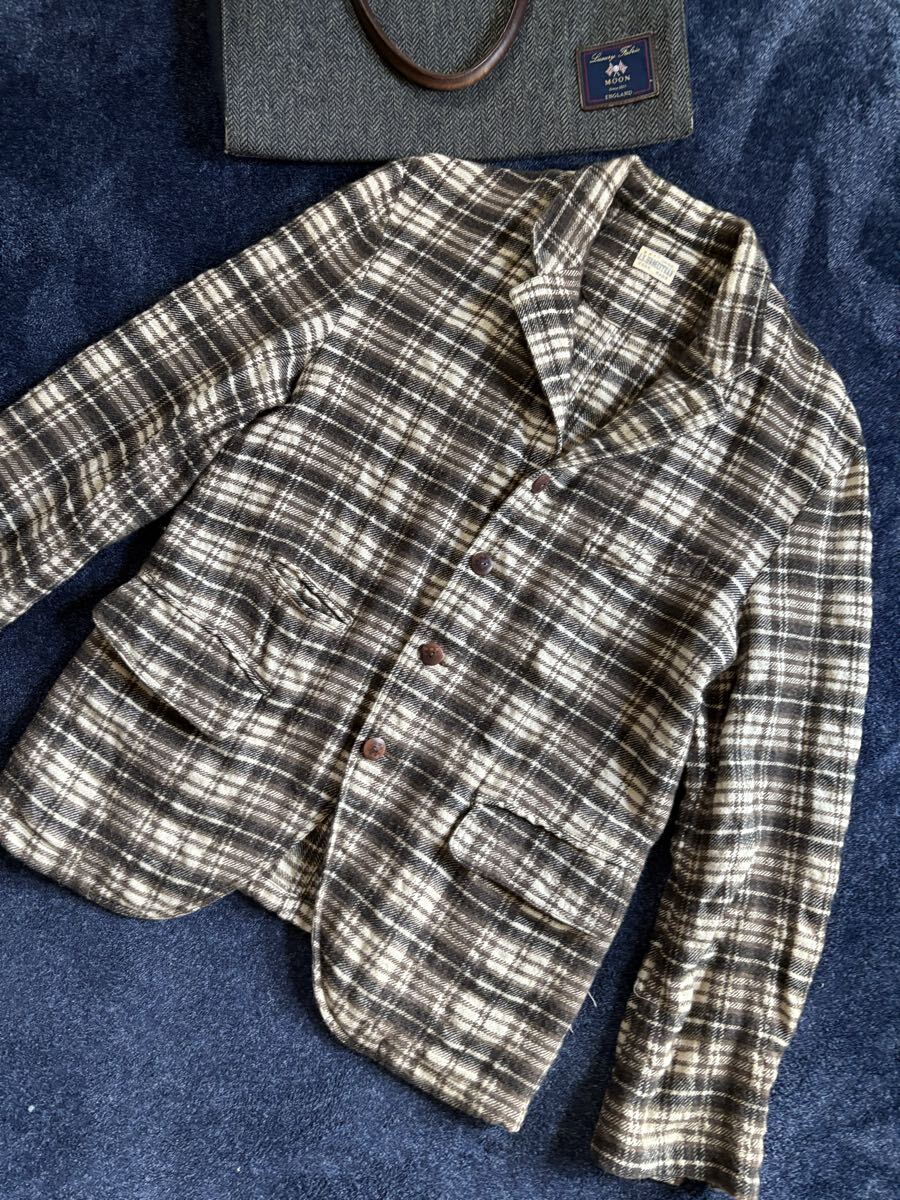 > 超美品 J.S HOMESTEAD JS ホームステッド ジャーナルスタンダード 日本製 ウール × リネン チェック メンズ テーラードジャケット sizeL
