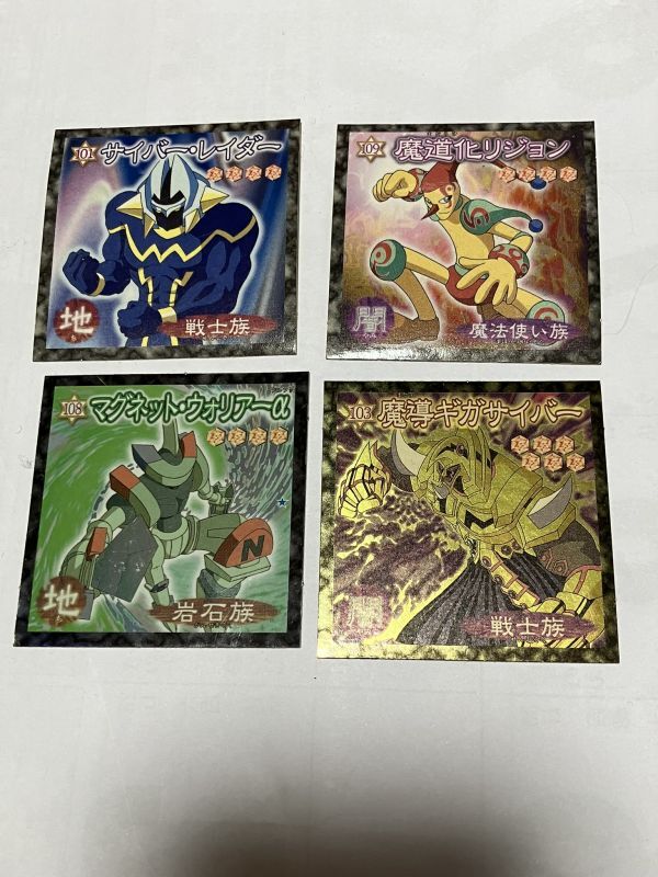 > 4枚セット価格★遊戯王★大昔のシール★ 森永製菓 魔導ギガサバー サイバー・レイダー マグネット・ウォリアーα 魔道化リジョン