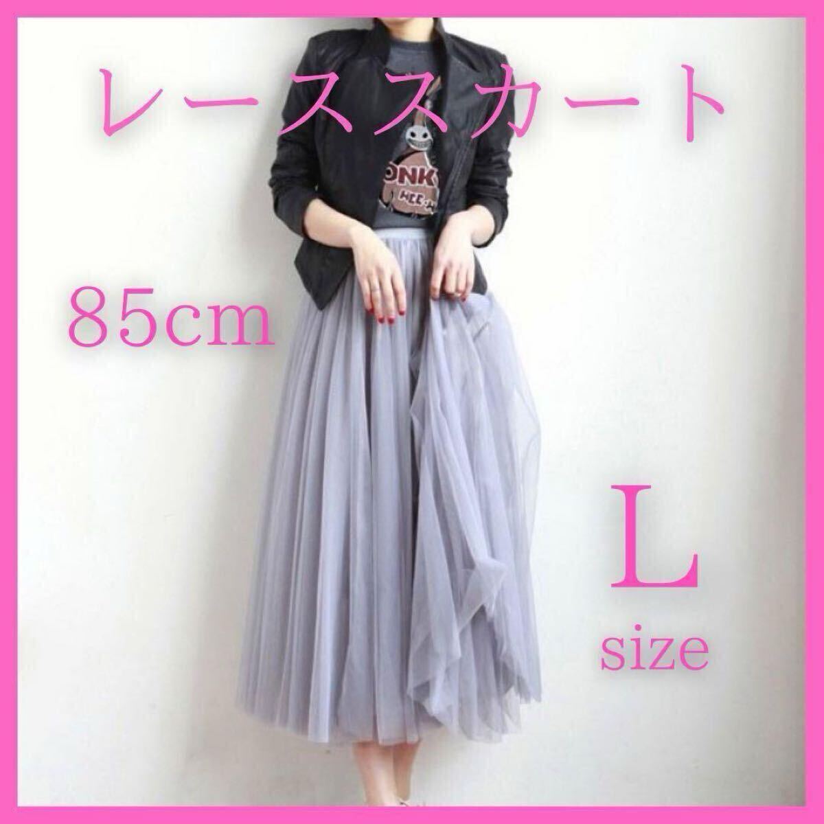- L チュールスカート レース シフォン 可愛い ロング エレガント 大人 夏 秋