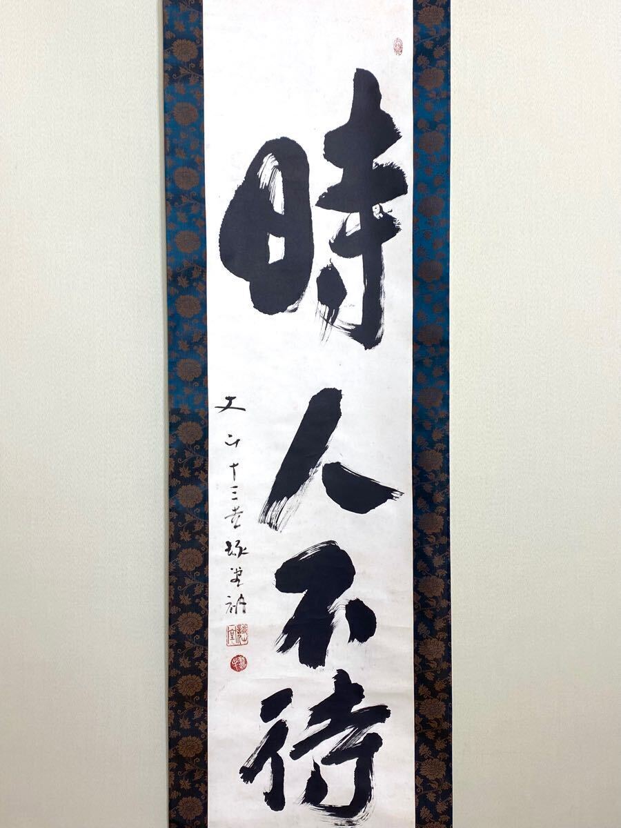 - 《魚亀》【模写】石川琢堂 露牛「時人不待」紙本 合箱 書 詩仙堂犬山寺13世 茶掛 茶道具 古美術 掛軸 掛け軸 人が書いたもの