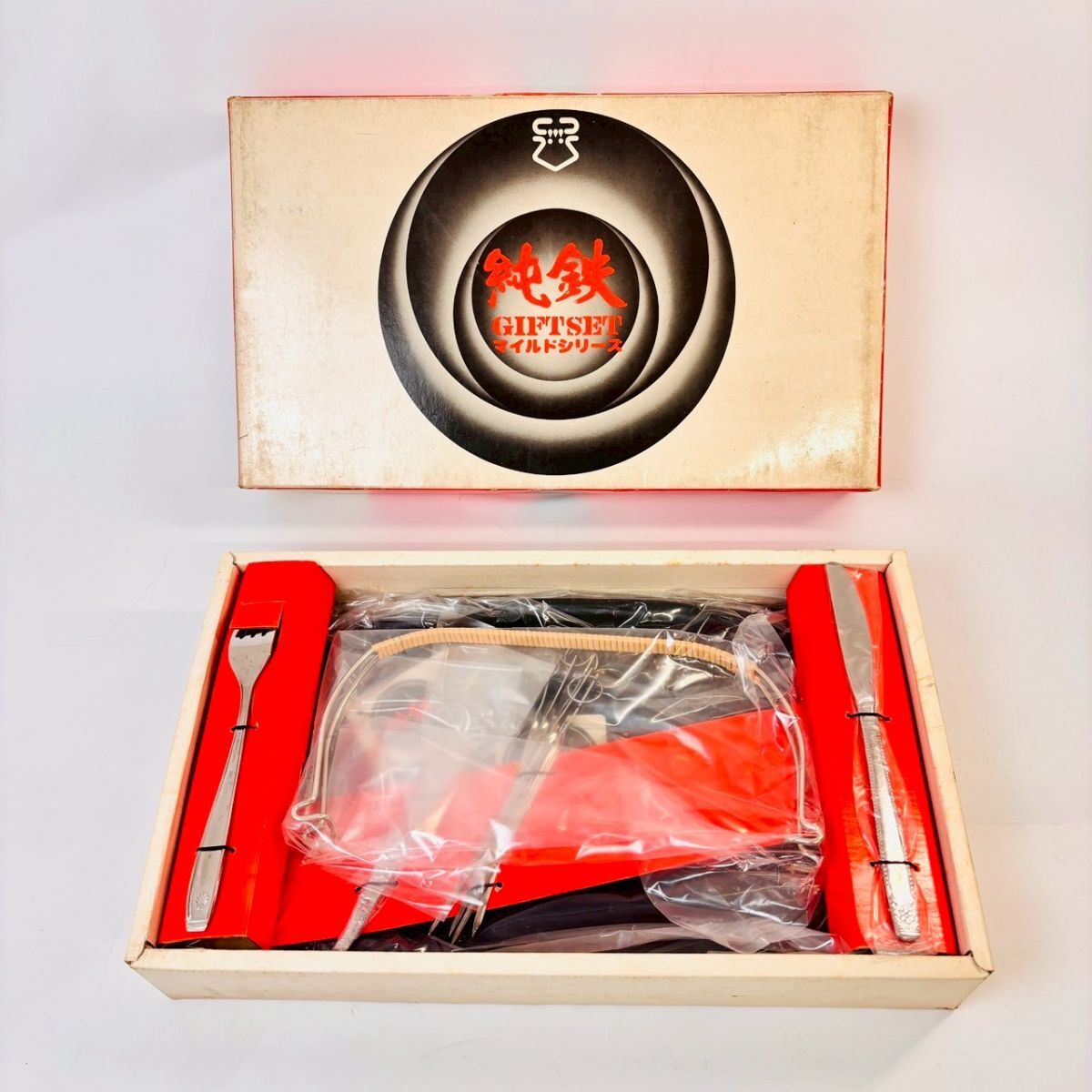 > R920-5 1円〜【純鉄】鉄板焼きセット GIFTSET マイルドシリーズ ヘラ ナイフ フォーク 箱付き 袋付き ステーキ皿 未使用 現状品 ワンスタ
