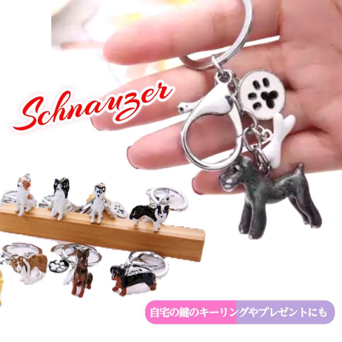 - シュナウザー 犬 キーホルダー チャーム アクセサリー おしゃれ プレゼント キーリングかわいい
