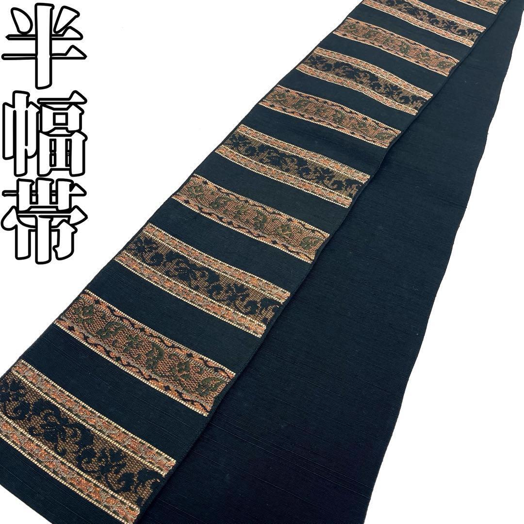 > 【着物と帯 時流】O25765◆正絹 半幅帯◆濃いグリーン 縞 美品