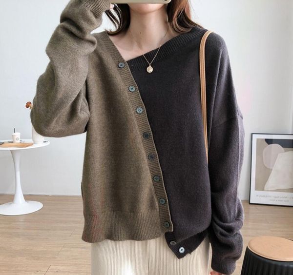 > 新入荷*秋冬 ニット セーター トップス レディース 不規則 配色 セーター 長袖 ゆったり ストレッチ ニットトップス 大きいサイズ*コーヒー
