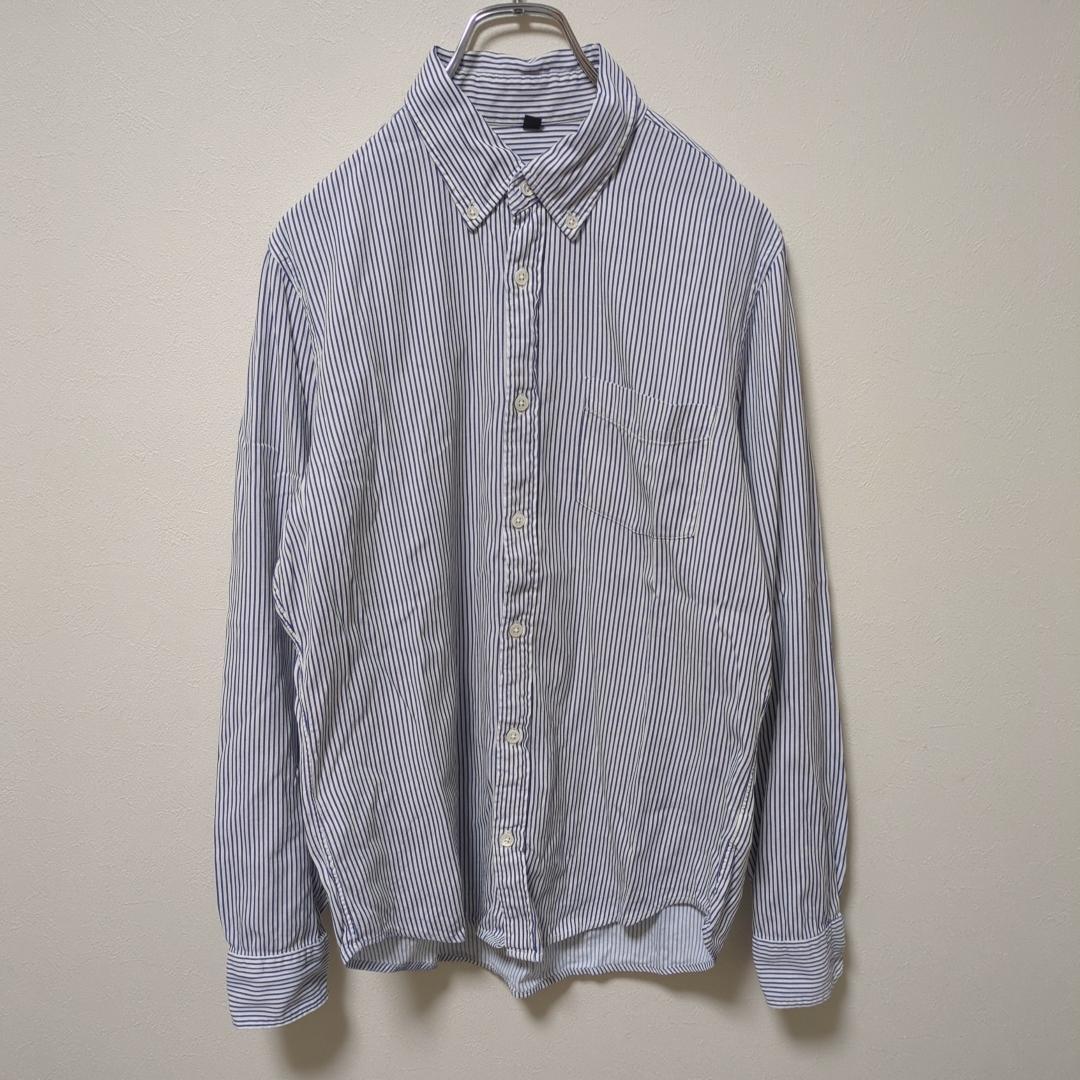 - ストライプシャツ(M)ボタンダウン*長袖*綿100%*オフィス*仕事*胸ポケット