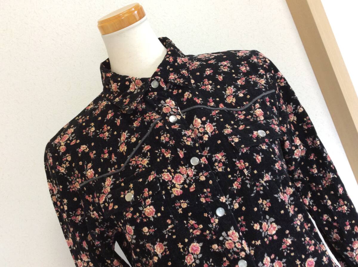 > 即決 八ヶ岳プレミアムアウトレット内 エドウィン購入 コーデュロイ ウエスタンシャツ 黒地に花柄 レターパックライト込 9月28日初出品