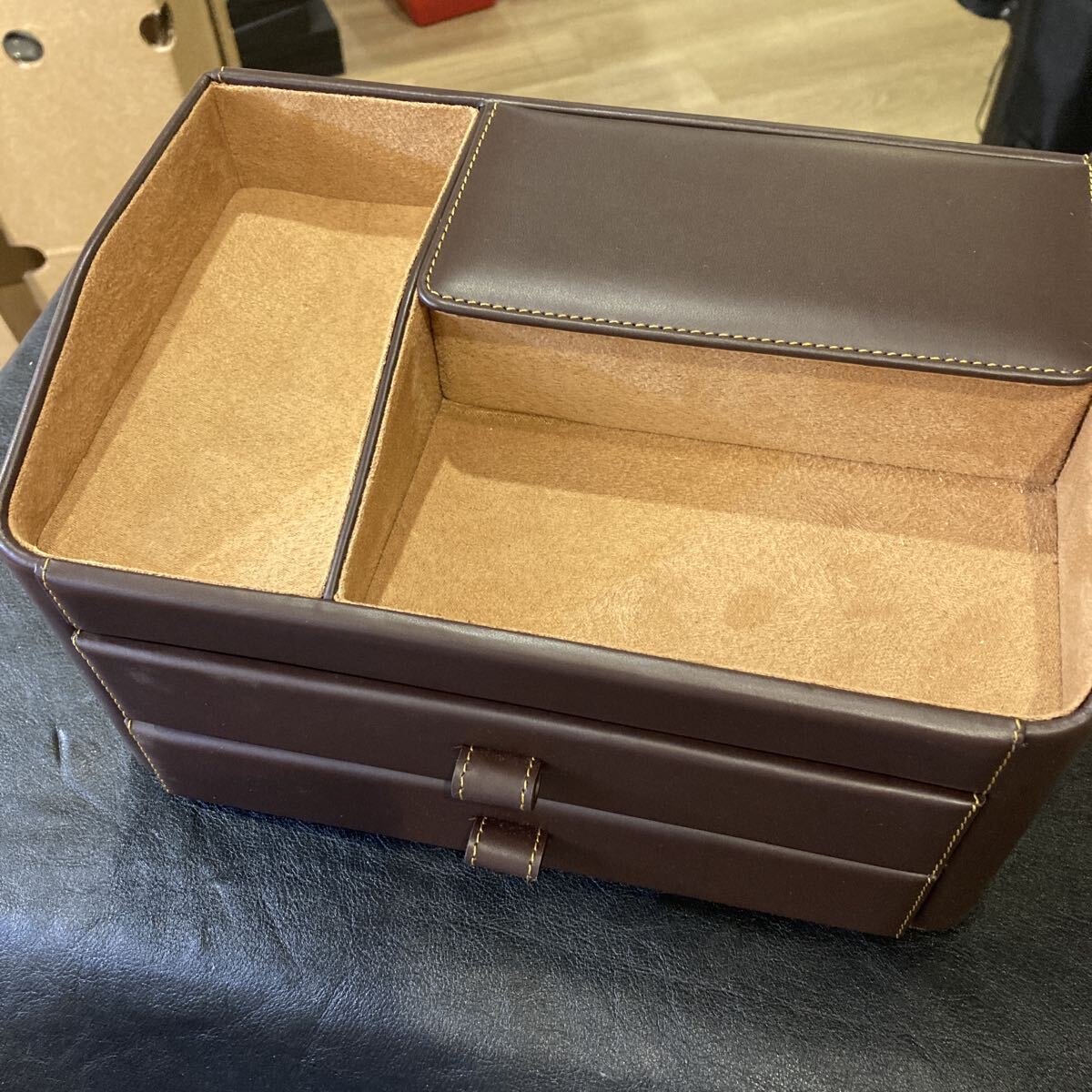 - アクセサリー ジュエリーケース 時計 眼鏡 ケース 小物入れ オーバーナイター 革製 未使用 業界団体の名前入り