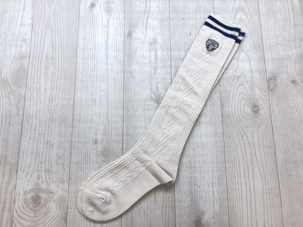 > 袋入り新品 メンバーズ MEMBERS トラッド プレッピー スクールvibes エンブレム刺繍 ロング ハイ ソックス 靴下 レディース ベージュ紺
