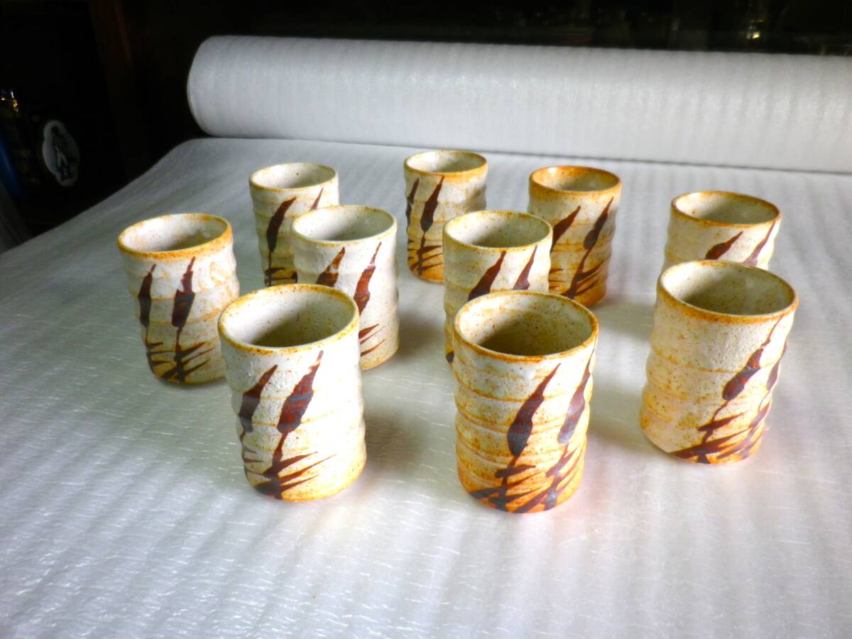 - 志野焼 湯呑10客 国立劇場記念品 未使用長期保管品