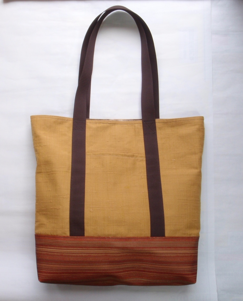- ハンドメイド レトロ名古屋帯リメイク トートバック 外側、内布ポケット付き 底部分合皮使用