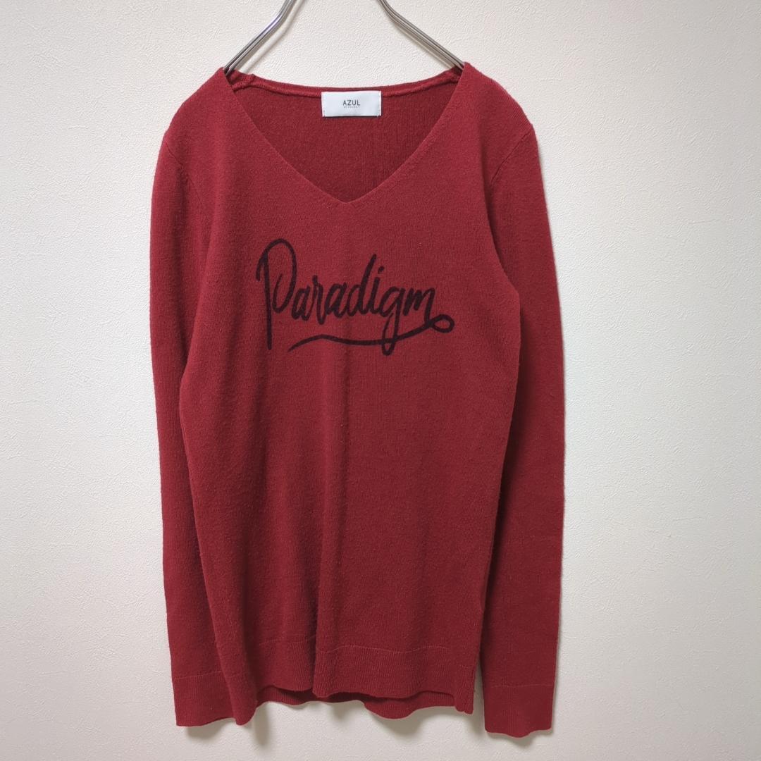 - アズールバイマウジー(M)Vネックニット*セーター*薄手*フロント英字ロゴ*赤