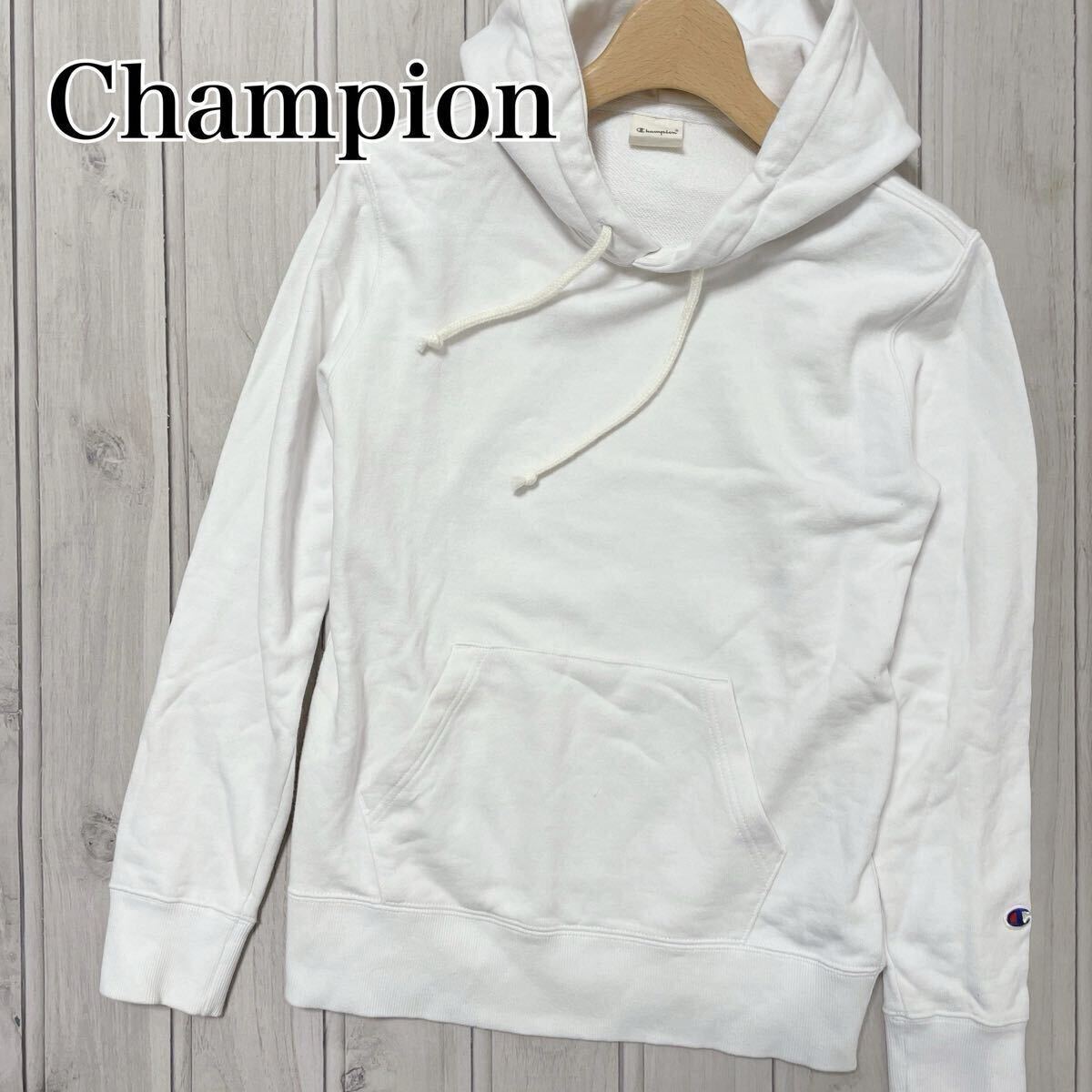 > Champion チャンピオン 長袖 スウェット パーカー トップス Sサイズ S 白 ホワイト ロゴ入り フード リバースウィップ REVERSE WEAVE