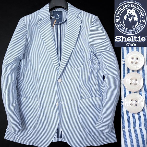 - 新品 シェルティークラブ ストライプ シアサッカー ジャケット L 青白 【SH1451101_77S_L】 Sheltie Club 春夏 メンズ コットン